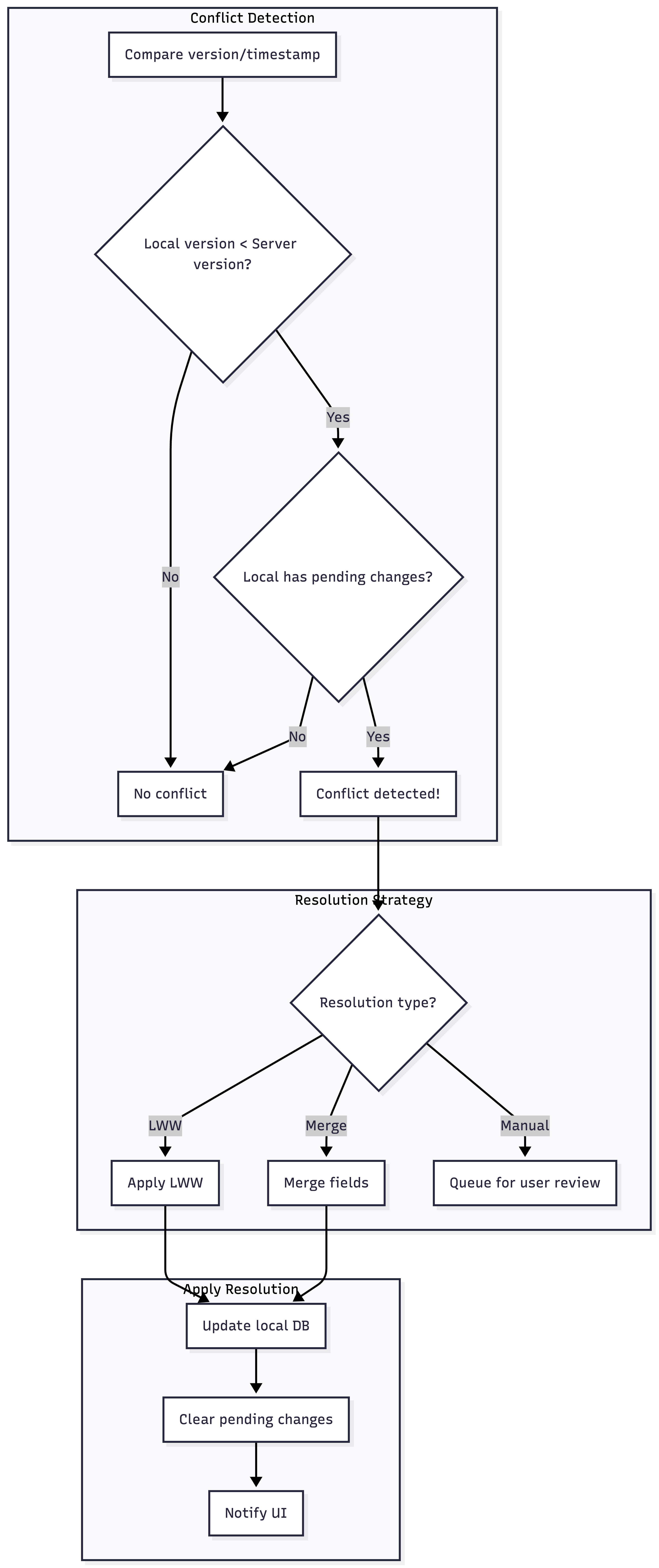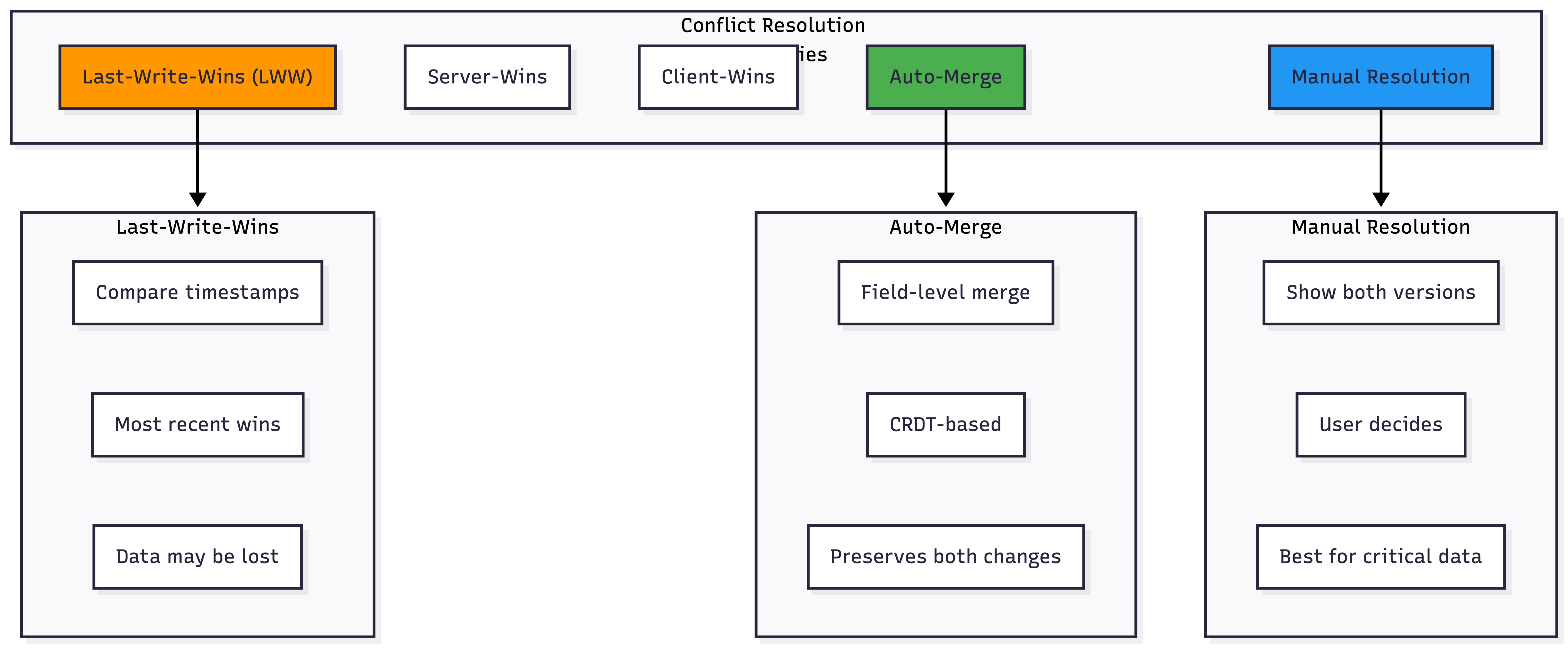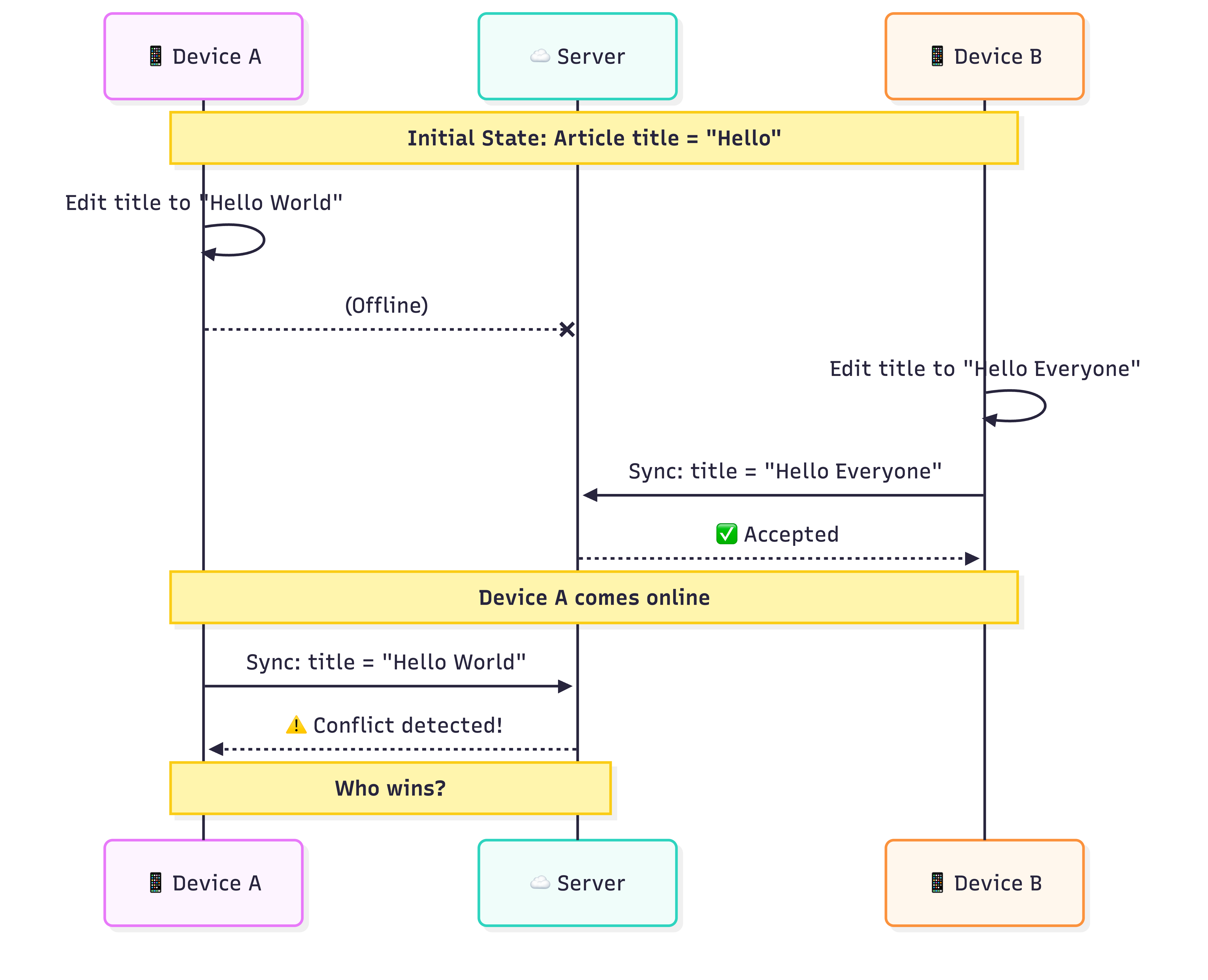 Conflicts occur when the same data is modified on multiple devices before synchronization. This is inevitable in offline-first systems.