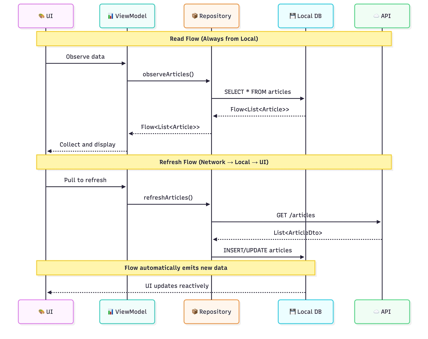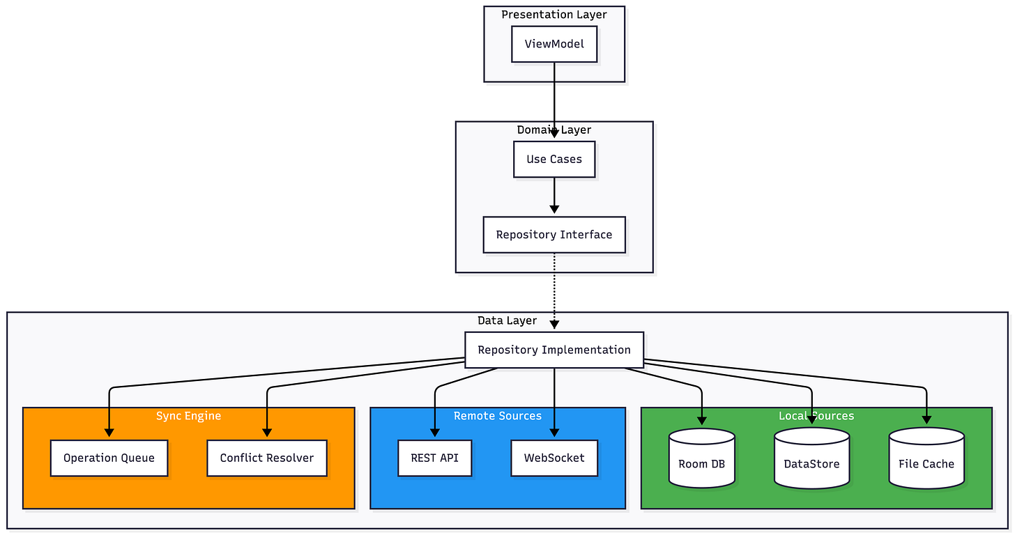The repository acts as the gatekeeper between your domain logic and data sources. In offline-first, it orchestrates the dance between local and remote data.