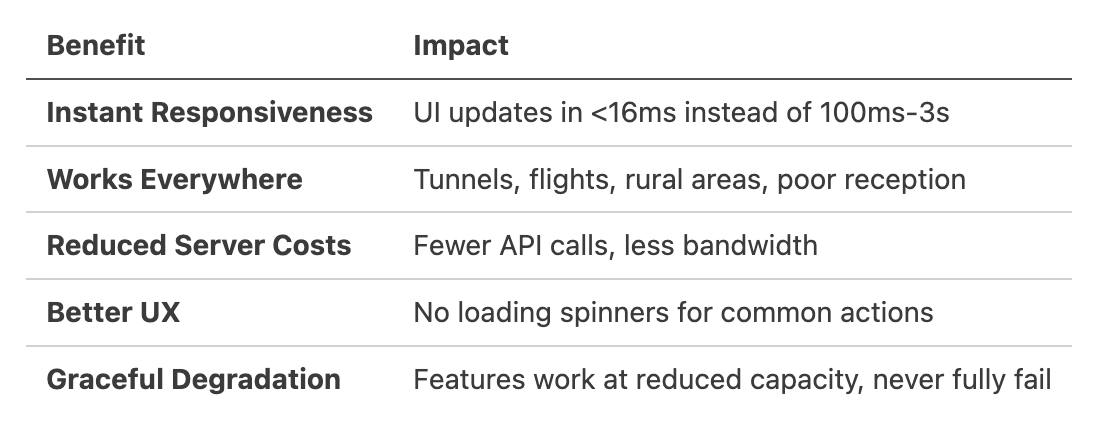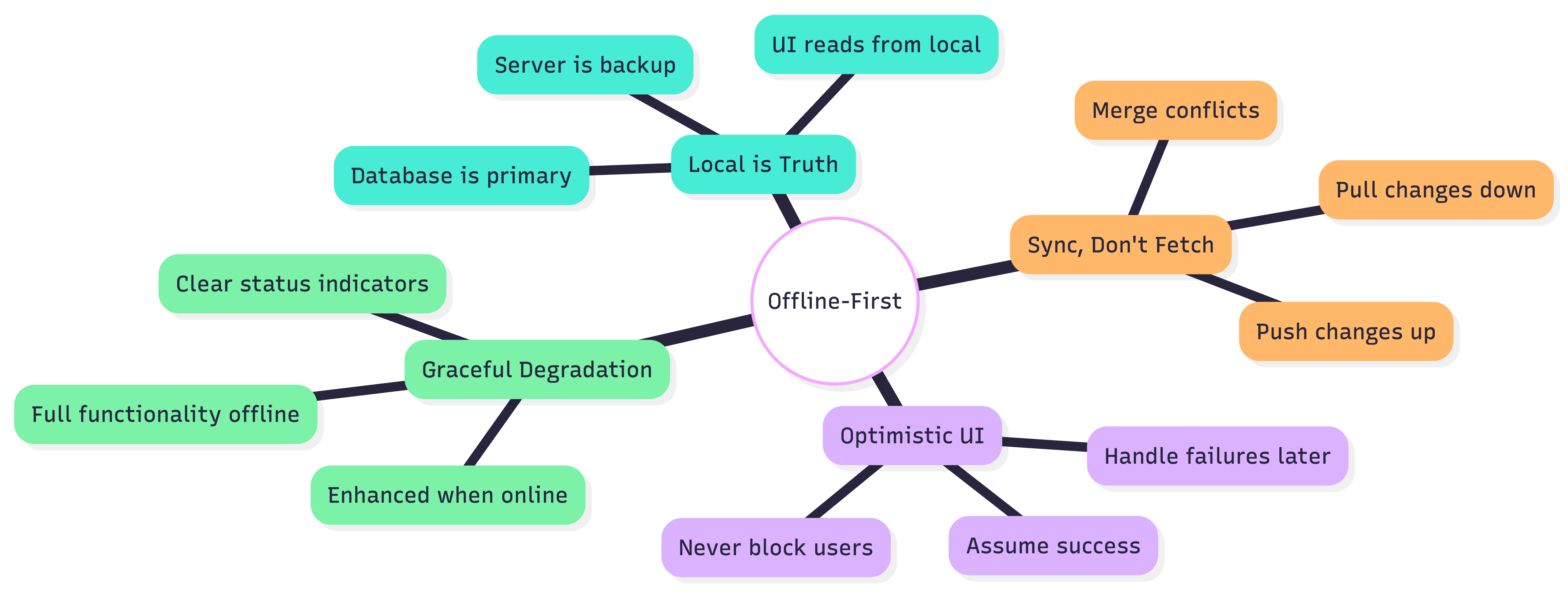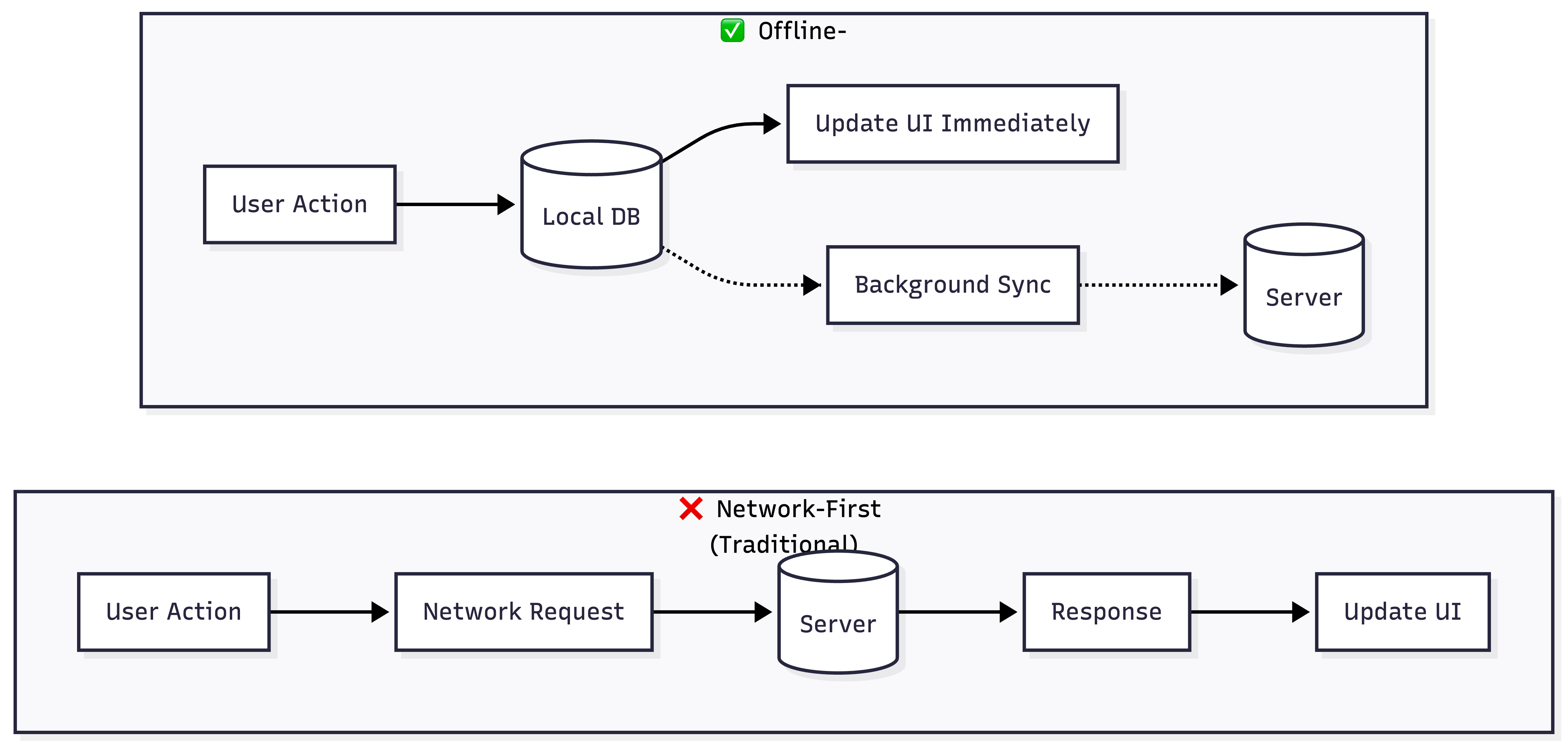Offline-first is an architectural approach where the local database is the primary source of truth, and the network is treated as an optimization layer rather than a requirement.